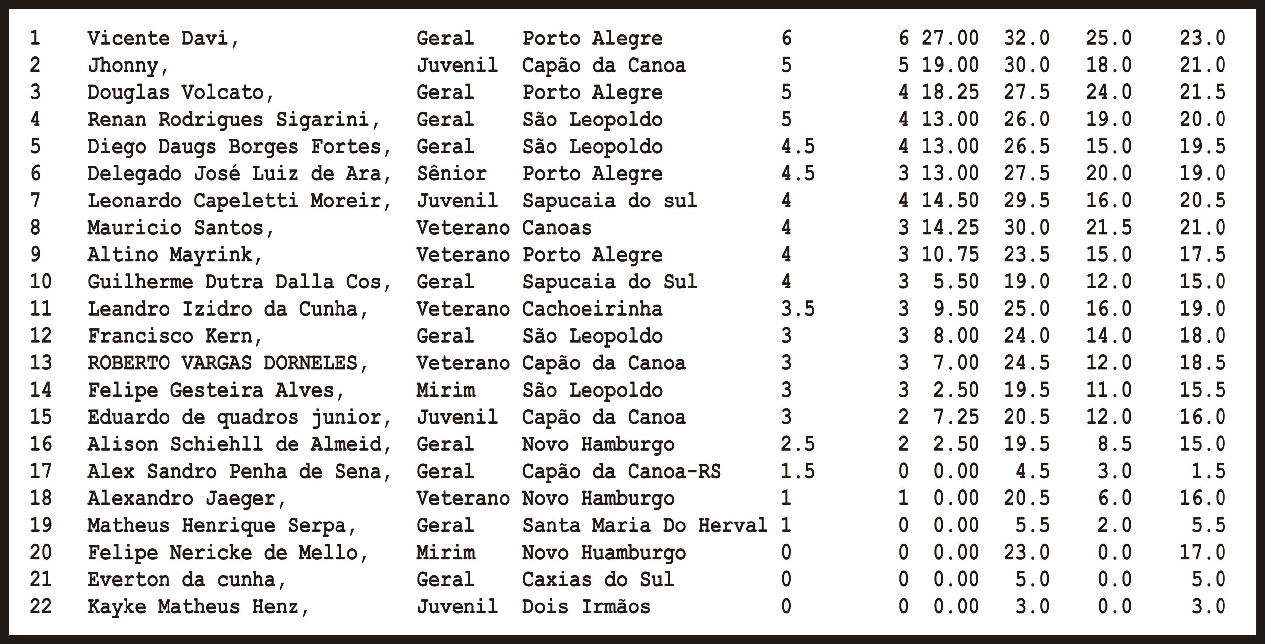 Em clima de 20 de Setembro, o restaurante do Jockey Clube de São Leopoldo recebeu enxadristas de toda a região. Quem fez “cabelo, barba e bigode” foi o porto-alegrense Vicente Davi, conquistando o troféu de campeão geral.