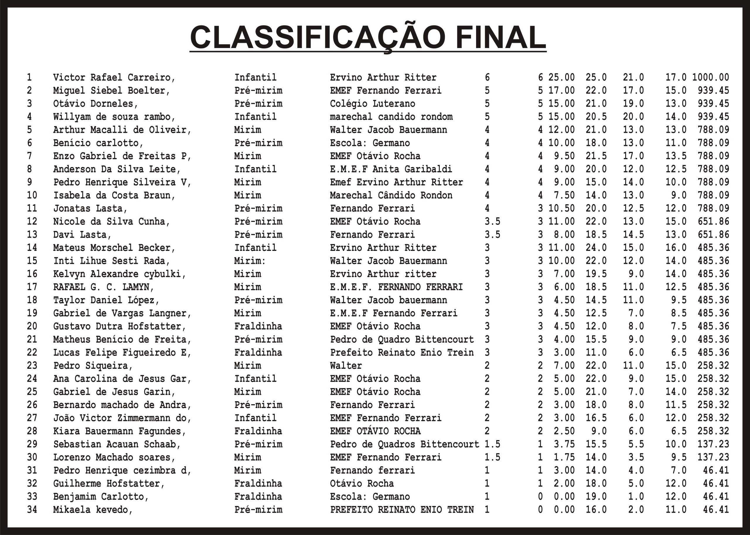 O destaque absoluto da competição foi o jovem enxadrista Victor Rafael Carreiro, que brilhou ao vencer todas as suas partidas, conquistando de forma incontestável o título de supercampeão do torneio.